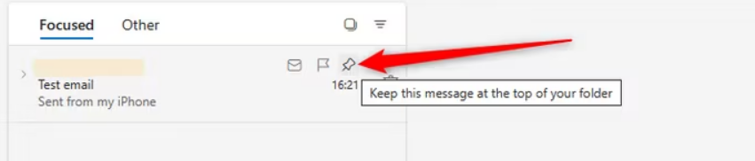 您是否有一封不想丢失的重要电子邮件?Microsoft Outlook 允许您将电子邮件固定到收件箱或文件夹的顶部。为此,请将鼠标悬停在要固定的电子邮件上,然后单击绘图图钉图标。